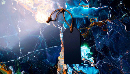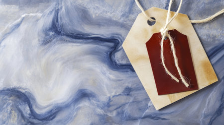 Abstract Blue Marble Background with Rustic Tag Design Element.