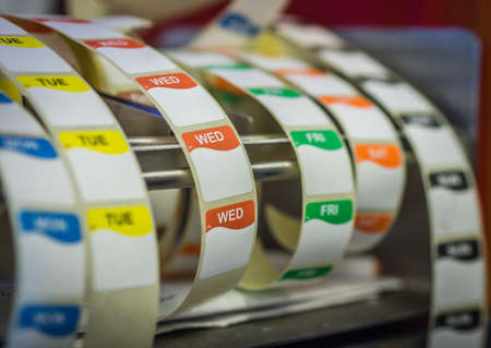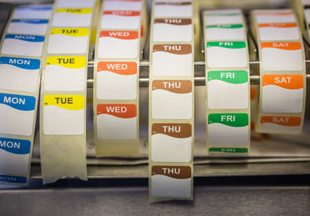 Labels used in catering for health and safety purposes marking the preparation and use by date of food items
