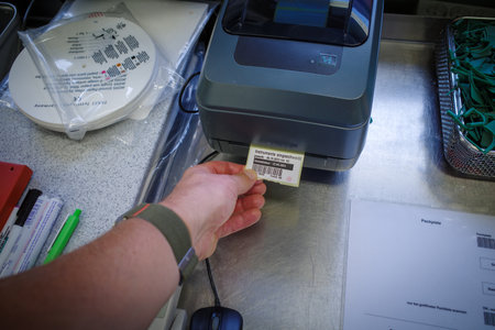 a label is pulled out of a label printer