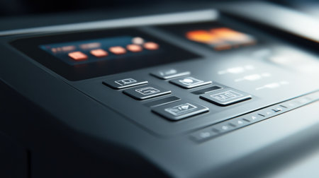 modern printer next to monitor and button panel in print center