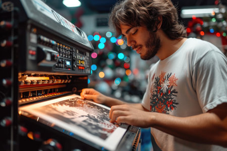 Man using printer while working in print shop