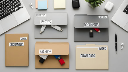 neatly organized folders on office desk, created with generative ai