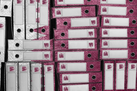 Many different files with documents as background, closeup