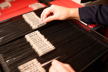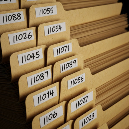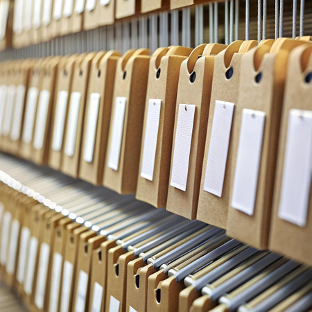 Close-up view of a vintage filing system showcasing organized files with visible tags. This image captures the essence of efficient document management and organized workspace.