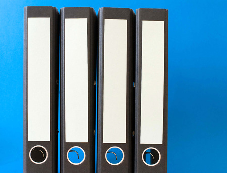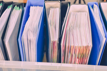 Stack of binders with documents in the office. Selective focus.