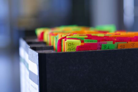 Collection of Multi Colored File folders on a table