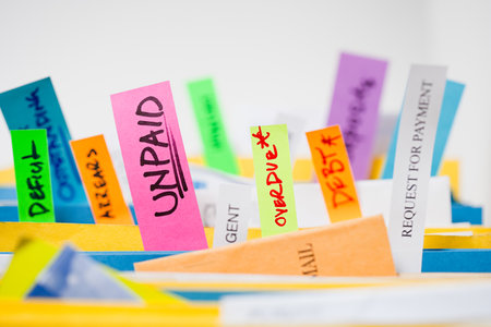 Text, word Unpaid is written on a folder lying on documents on an office desk. Business concept.