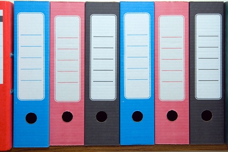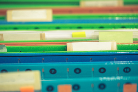 Colorful file folders close-up, shallow depth of field.