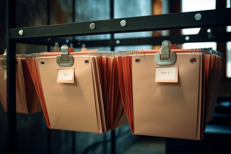 Organized Efficiency: A Close-Up View of File Folders with Documents