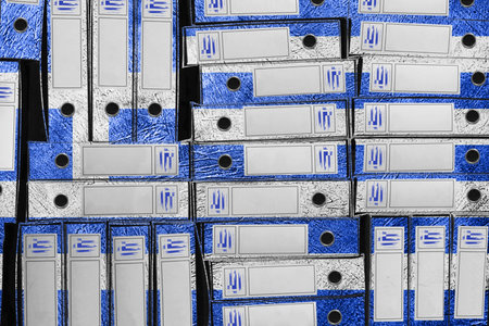 Greece Flag Colors Folder Stack, Bureaucracy and Government Administration Concep