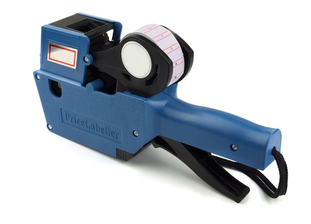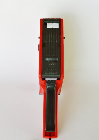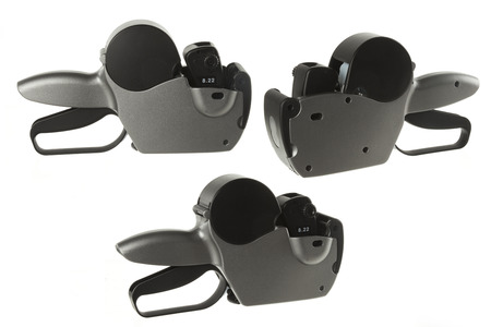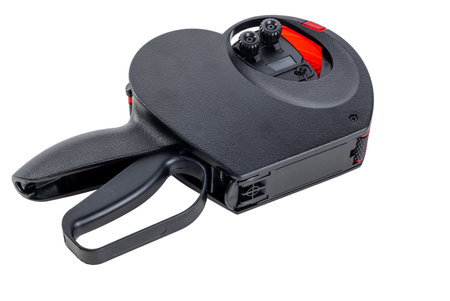Handheld Pricing Label Gun With Red and Black Design for Retail Use isolated on white