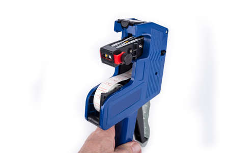 Handheld Pricing Label Gun With Red and Black Design for Retail Use isolated on white, 2026 concept