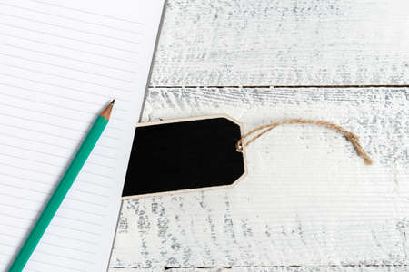 Clothing tag, label blank mockup template on a paper background. Price tag, gift tag, sale tag.
