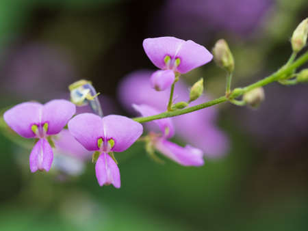 Pink little flowers over green background in tropical setting in Southeast Asia
