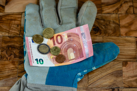 Worker counting his earnings, Costa Rica money, Concept of wages and labor costs in industry