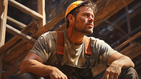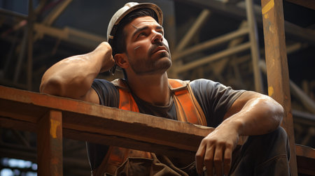 Exhausted african builder resting during a break at a bustling construction site, reflecting on the demands of hard work and labor