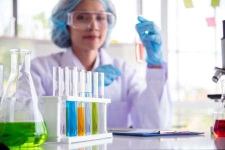 Female scientist are experimenting in the laboratory, science concept, virus, chemical.