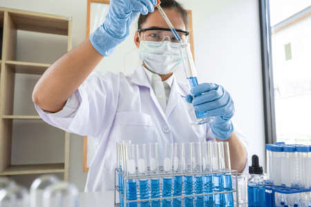 Female Scientist are experimenting in the laboratory, science concept, virus, chemical.