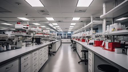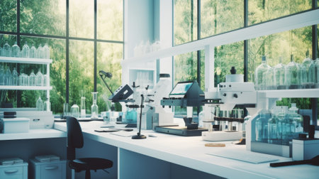 immaculate laboratory with high-tech equipment and glassware, ready for experiments, created with generative ai