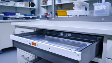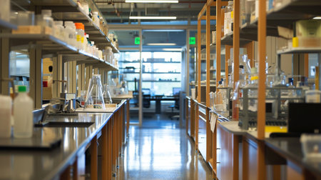 Laboratory interior with equipment and equipment for scientific research and development.