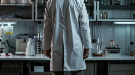 Doctor in the laboratory analyzes samples under a microscope. Pharmaceutical treatment concept.