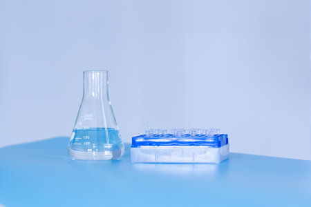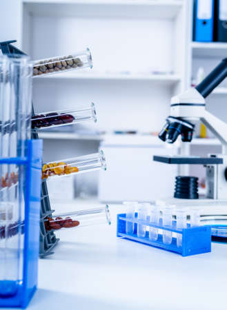 Laboratory plastic test tubes for an experiment in a science research lab, scientific background, industry concept