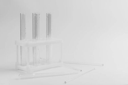 transparent test tubes on a white background of chemistry experiments
