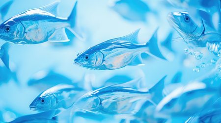 Silver fish swimming together in an aquarium, creating mesmerizing wave patterns that enhance the tranquil underwater environment