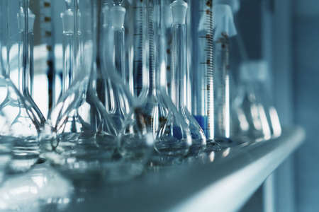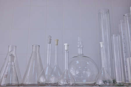 Laboratory tubes and flasks for analyzes and experiments. Science tool, chemical laboratory.
