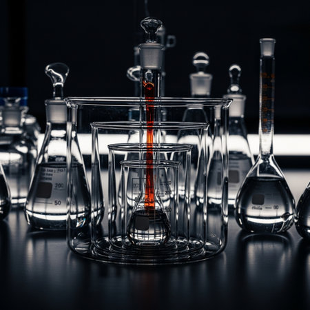 Assorted laboratory glassware equipment ready for an experiment in a science research lab