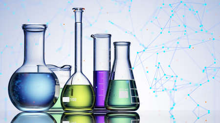 Science laboratory research and development concept. Colorful chemical test tubes with liquid. 3D rendering