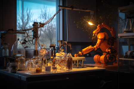 robotic arm performing delicate tasks in lab, created with generative ai