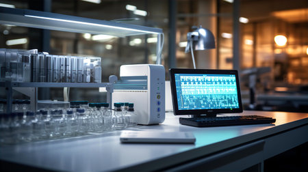 Interior of a modern medical laboratory with equipment and science experiments.