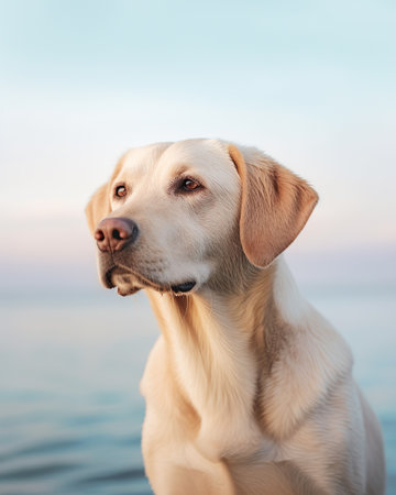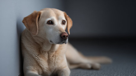 Charming Labrador Retriever Portrait with Expressive Gaze on Neutral Background for Stock Photos