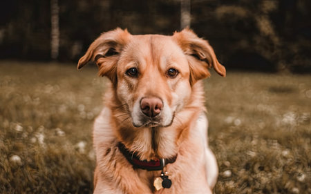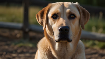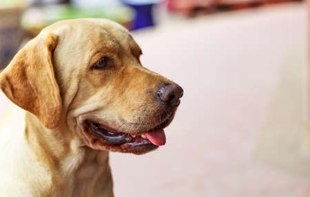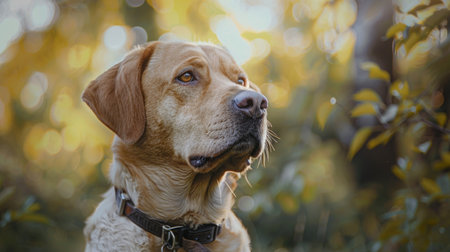 Labrador Retriever dog portrait in the garden, shallow depth of field