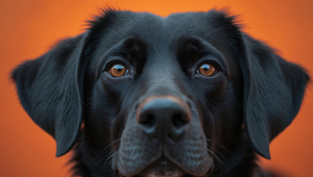 AI Generated. Charming Closeup of a Black Dog with Vibrant Orange Background