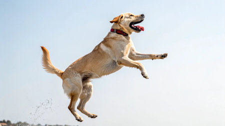 AI Generated. cheerful Labrador wear bow tie on neck , clean bright background, free copy space on the right