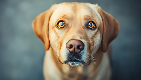 Adorable Close-Up of a Playful Labrador with a Charming Expression Against a Soft Gray Background