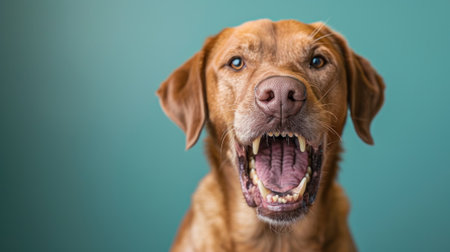 Chesapeake Bay Retriever, angry dog baring its teeth, studio lighting pastel background