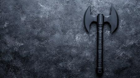 Dark battle axe on a textured gray background.