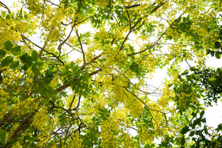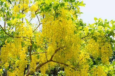 Yellow Blossom of Cassia Fistula (or Golden Shower Tree) is Blooming on the Season of Summer.