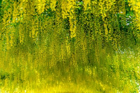 spring background of yellow labrum brushes close-up. Yellow labrum flowers on a tree.