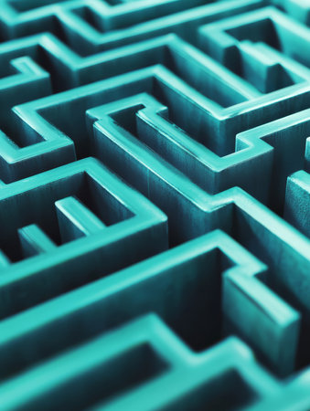 A mesmerizing turquoise maze artwork that intricately emphasizes depth and features complex patterns, sparking endless curiosity and boundless creativity in anyone who gazes upon it