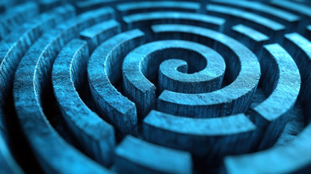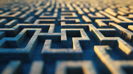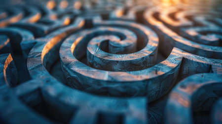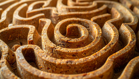A macro view into the heart of a complex, textured labyrinth. Each turn and dead end represents a choice on a difficult journey, symbolizing the strategic challenges and complex problems we face in business and life. The goal is just around the corner, waiting to be discovered.