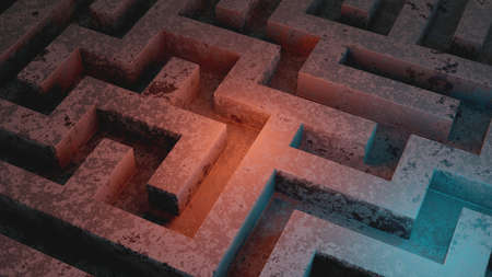 Labyrinth concept, abstract grunge background, maze game, dark colors