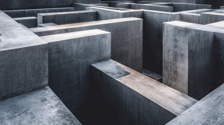 Explore an abstract composition of concrete blocks forming a complex labyrinth. This image captures intricate shadows and textures, showcasing modern architecture.