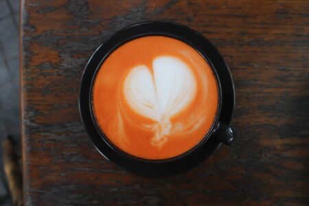 Coffee cup with latte art on old table