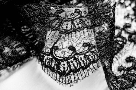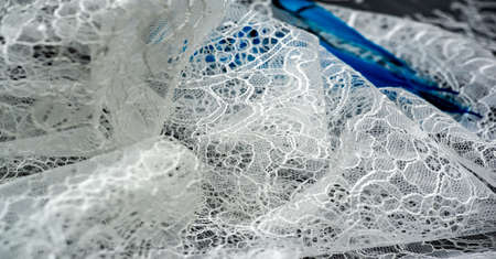 The texture of lace on the fabric. Slim beautiful lace