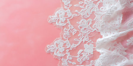 AI Generated. Delicate white lace on a soft pink background