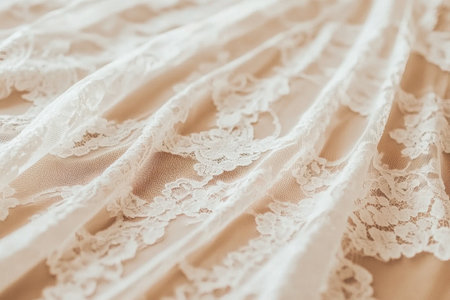 This image showcases exquisite lace edging on a creamy fabric, highlighting its intricate details and elegant design, perfect for decorations and style inspiration.